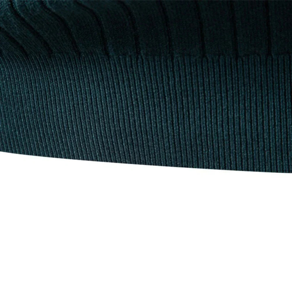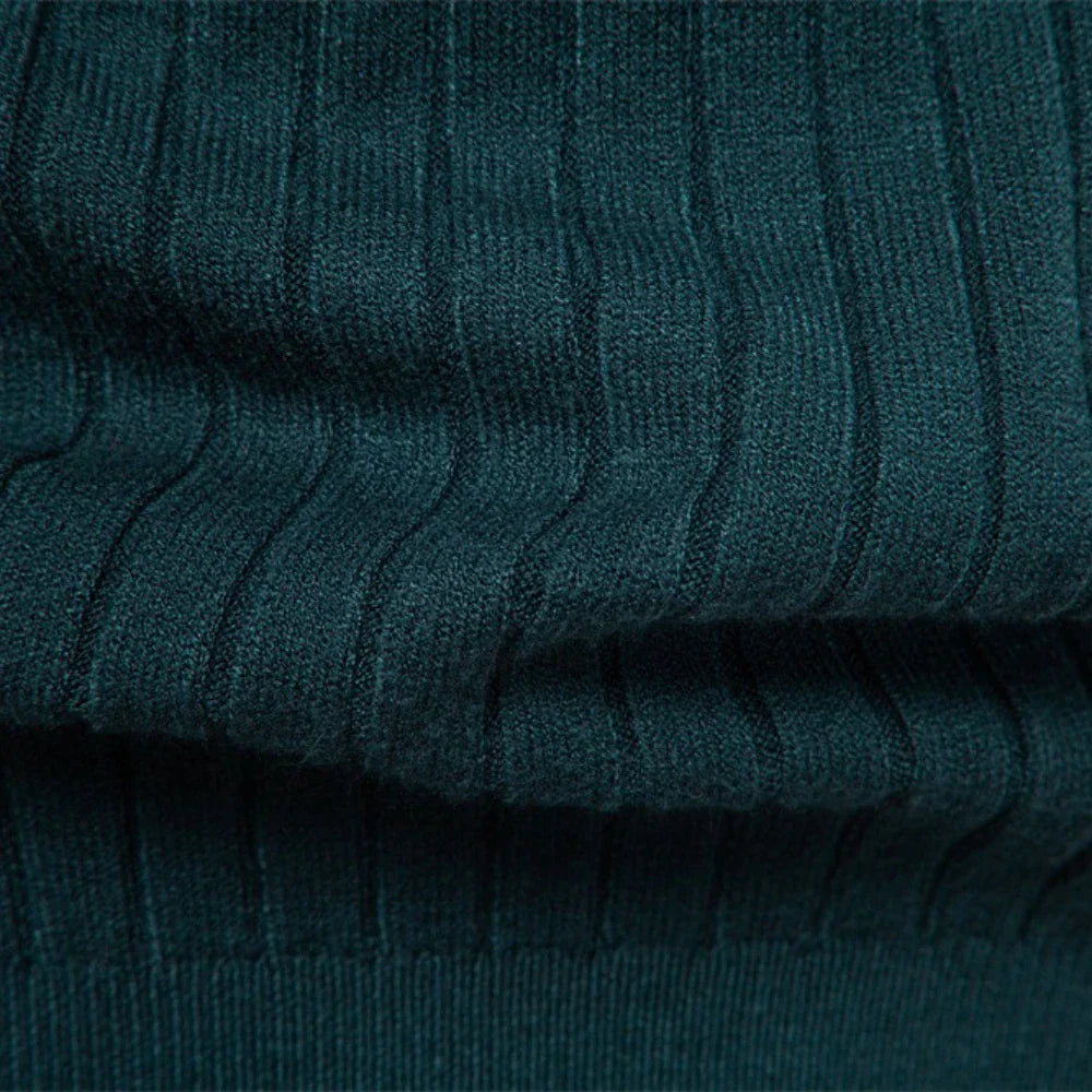 A ribbed turtleneck sweater designed for warmth and style. The soft knit offers comfortable stretch and a sleek silhouette, making it a versatile choice for cooler days.