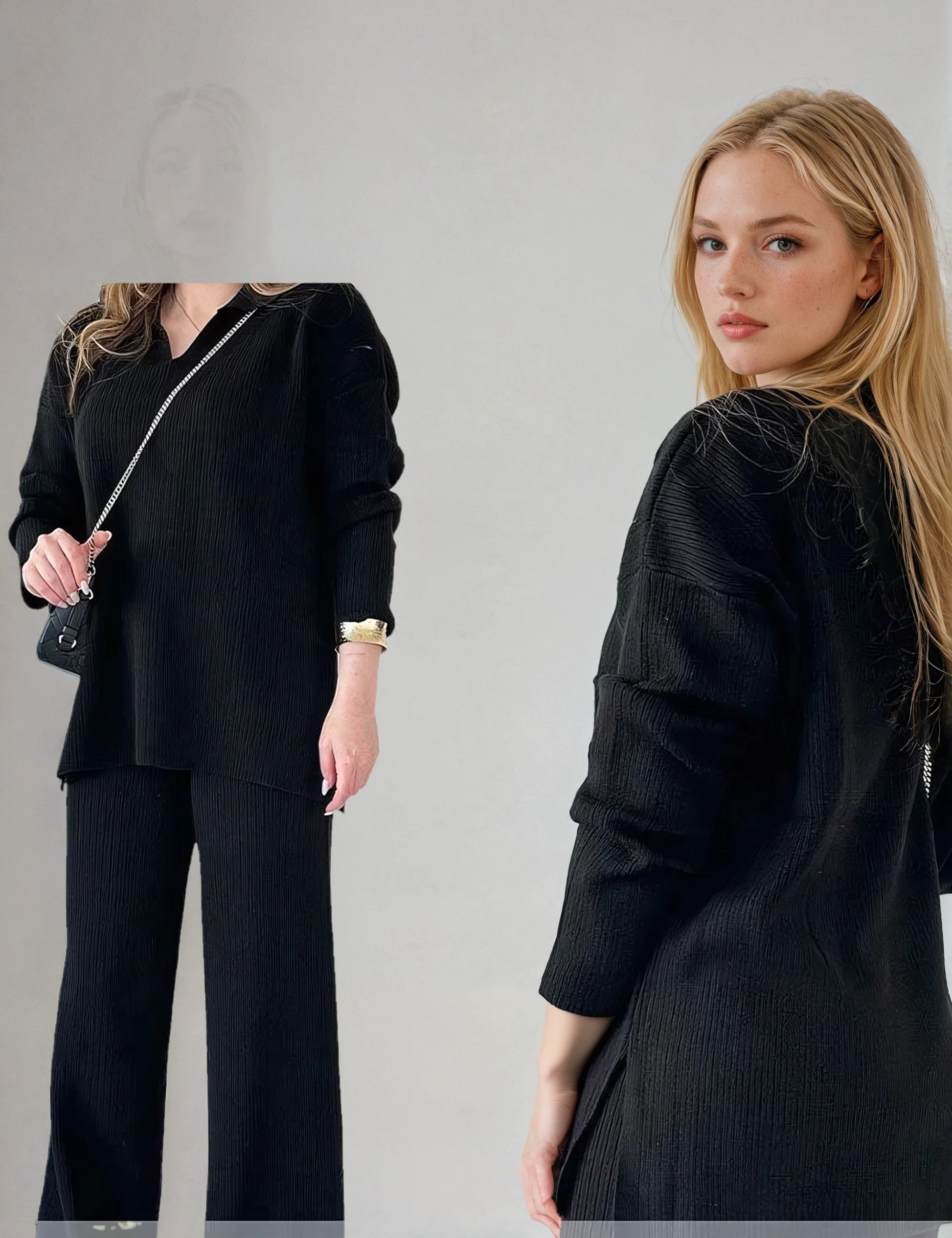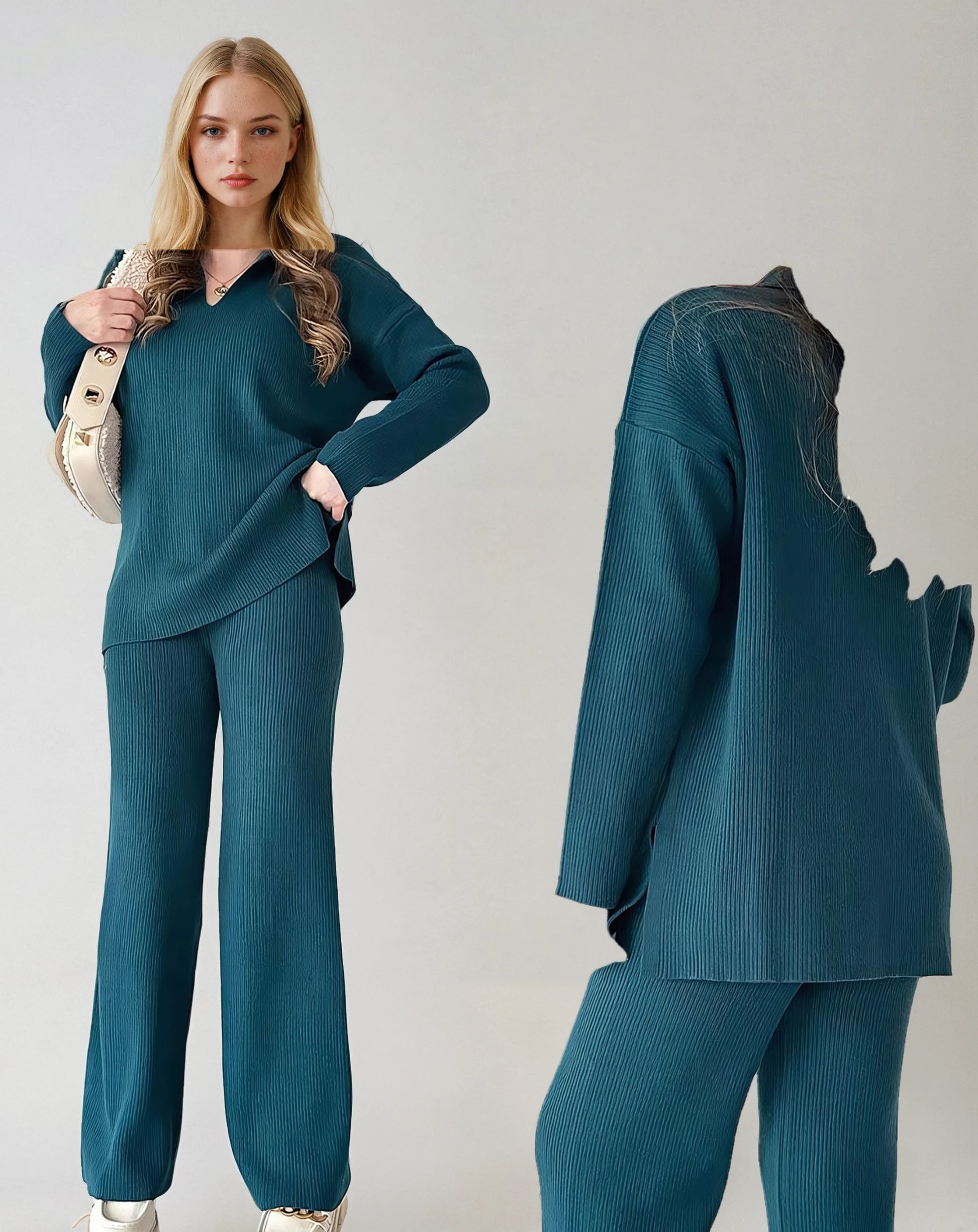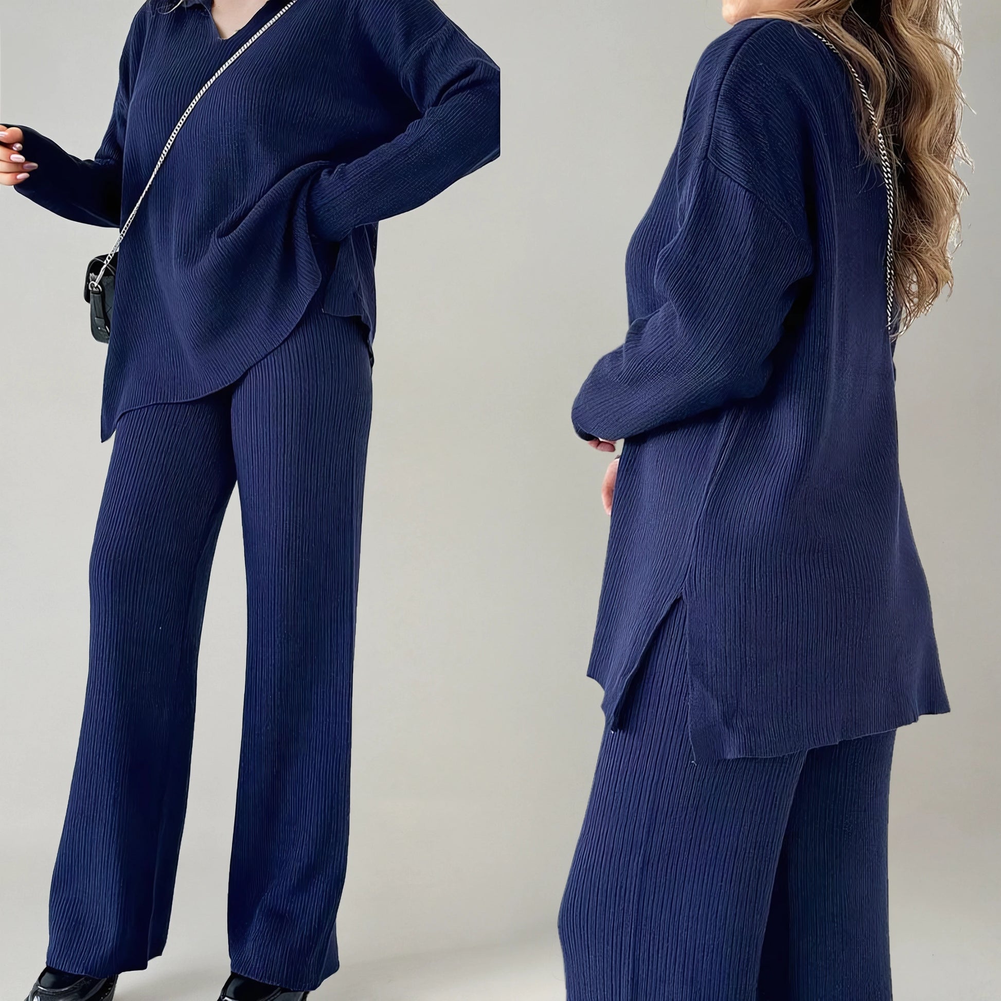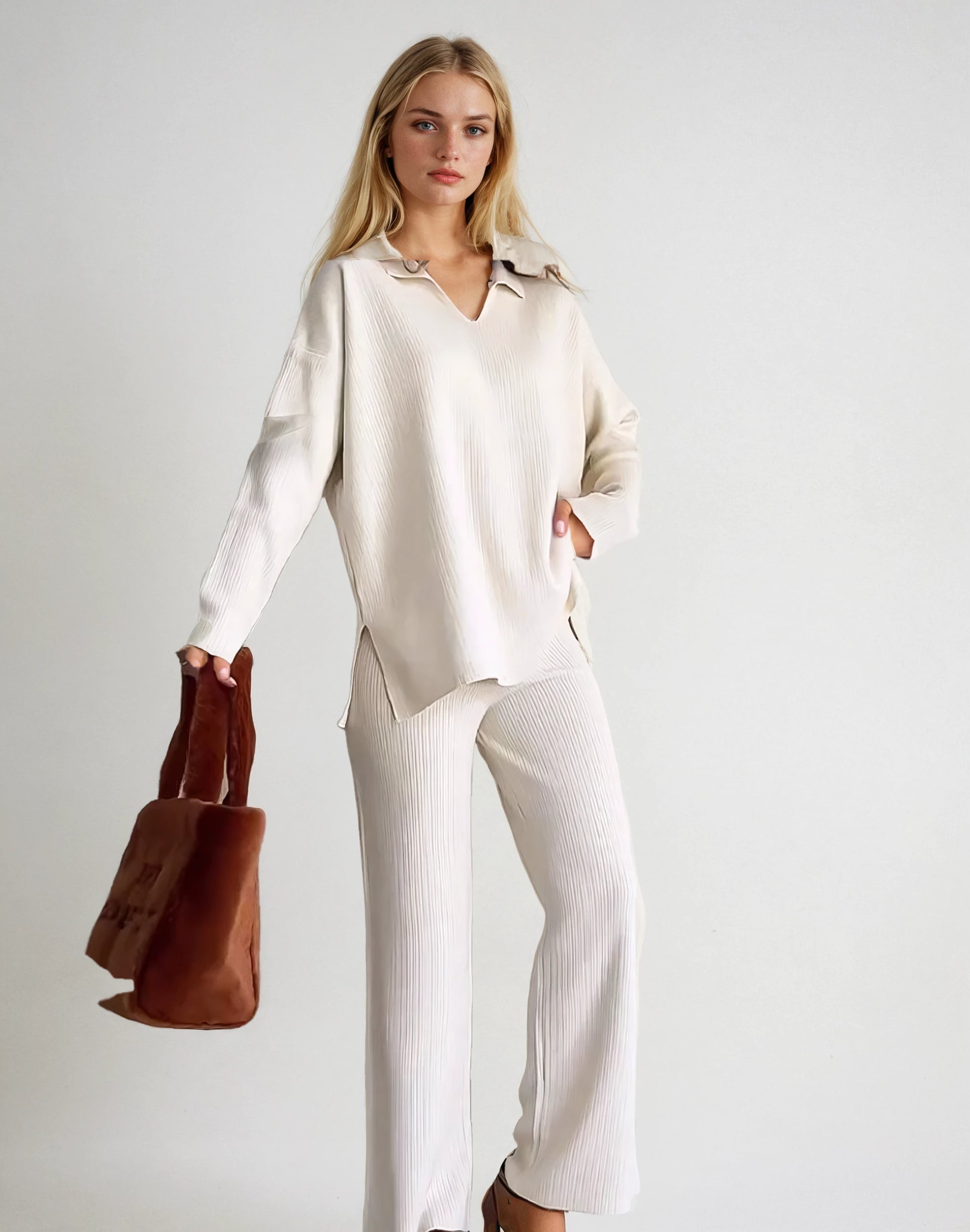 Fela | Casualowy Zestaw Dwuczęściowy z Dekoltem w Serek i Rozcięciem