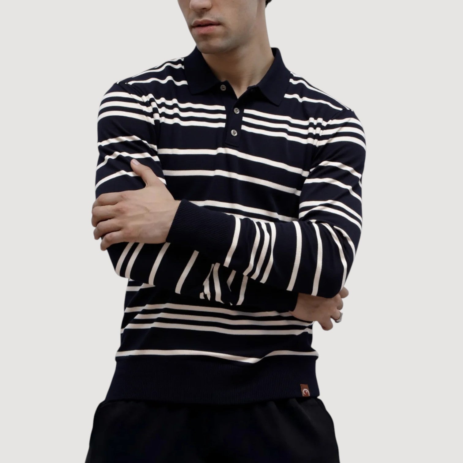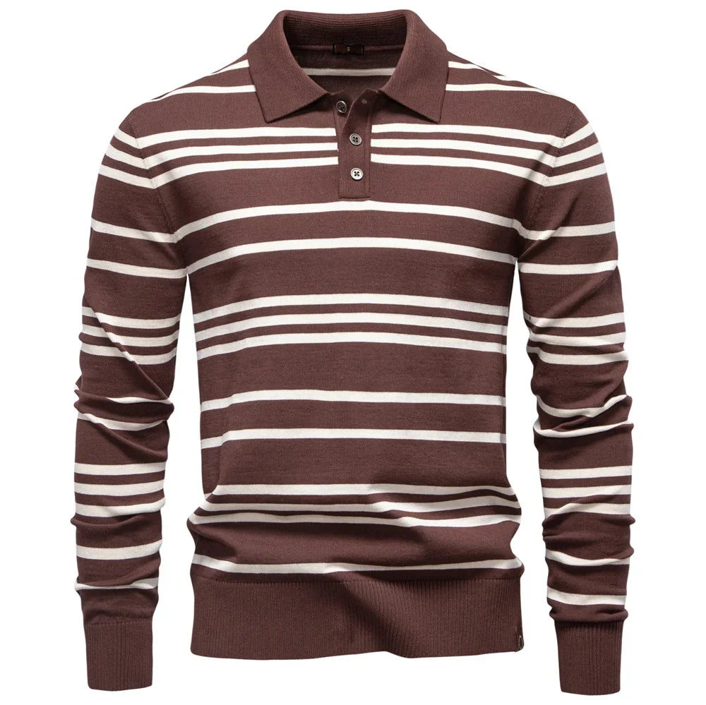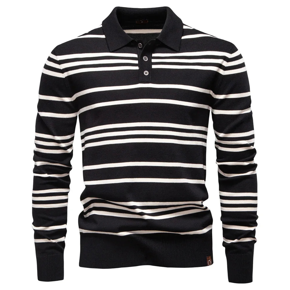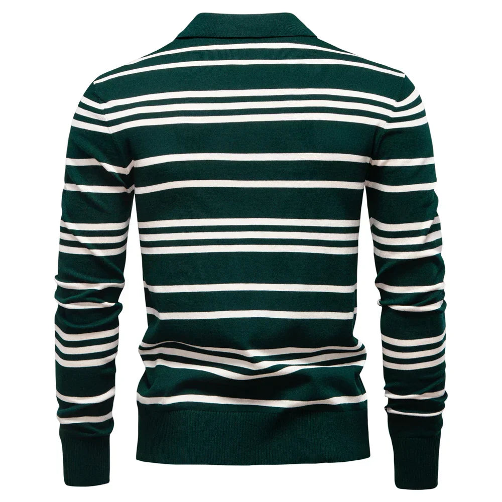 A refined knit sweater with a modern striped design. The soft fabric blend gives it a smooth feel and comfortable fit, making it a versatile piece for both casual wear and smart layering.